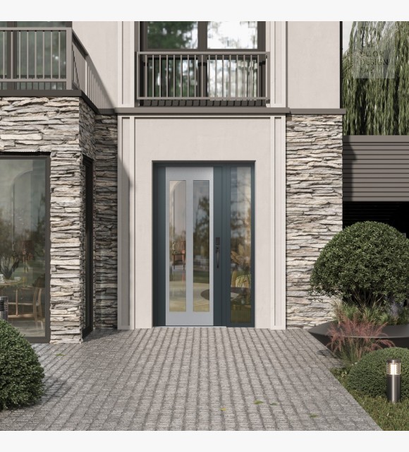 The double-chamber glazing combined with polystyrene insulation reduces heat loss by 40-50% compared to conventional exterior doors: