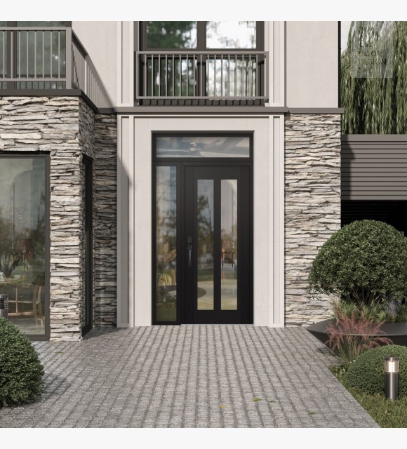 The double-chamber glazing combined with polystyrene insulation reduces heat loss by 40-50% compared to conventional exterior doors:
