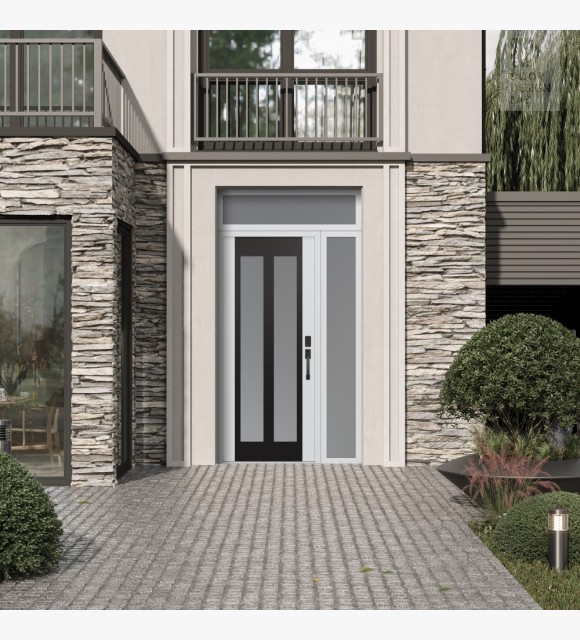 The double-chamber glazing combined with polystyrene insulation reduces heat loss by 40-50% compared to conventional exterior doors: