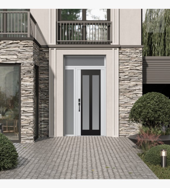 The double-chamber glazing combined with polystyrene insulation reduces heat loss by 40-50% compared to conventional exterior doors:
