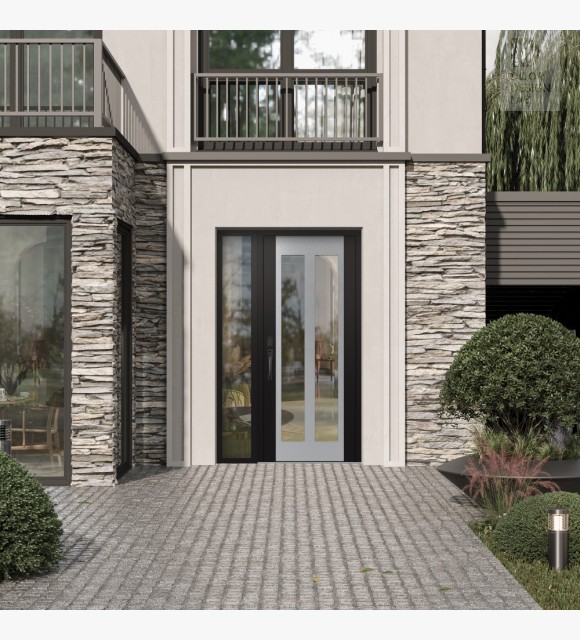 The double-chamber glazing combined with polystyrene insulation reduces heat loss by 40-50% compared to conventional exterior doors: