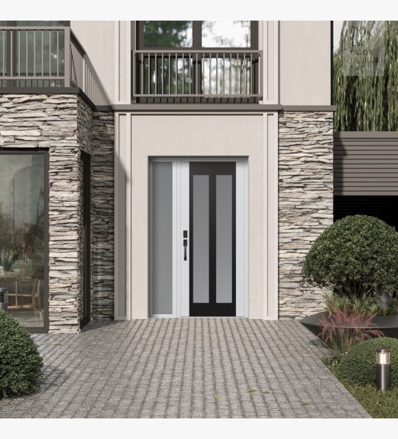 The double-chamber glazing combined with polystyrene insulation reduces heat loss by 40-50% compared to conventional exterior doors: