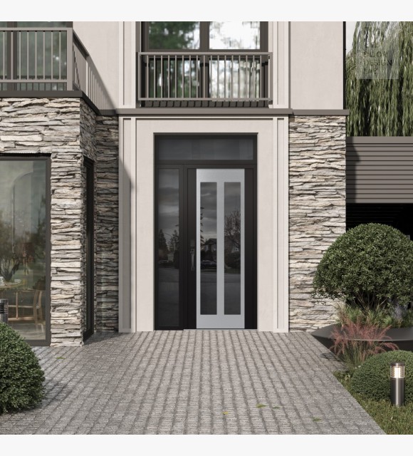 The double-chamber glazing combined with polystyrene insulation reduces heat loss by 40-50% compared to conventional exterior doors: