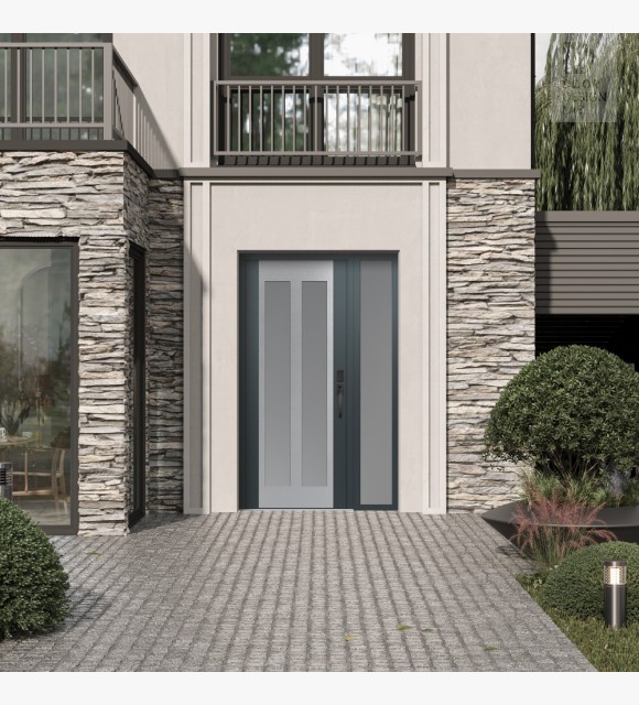The double-chamber glazing combined with polystyrene insulation reduces heat loss by 40-50% compared to conventional exterior doors: