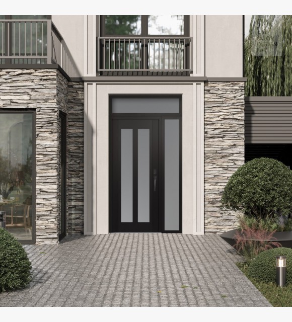 The double-chamber glazing combined with polystyrene insulation reduces heat loss by 40-50% compared to conventional exterior doors: