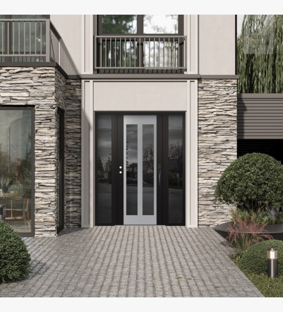 The double-chamber glazing combined with polystyrene insulation reduces heat loss by 40-50% compared to conventional exterior doors: