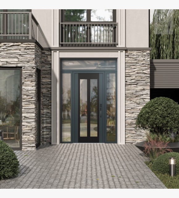 The double-chamber glazing combined with polystyrene insulation reduces heat loss by 40-50% compared to conventional exterior doors: