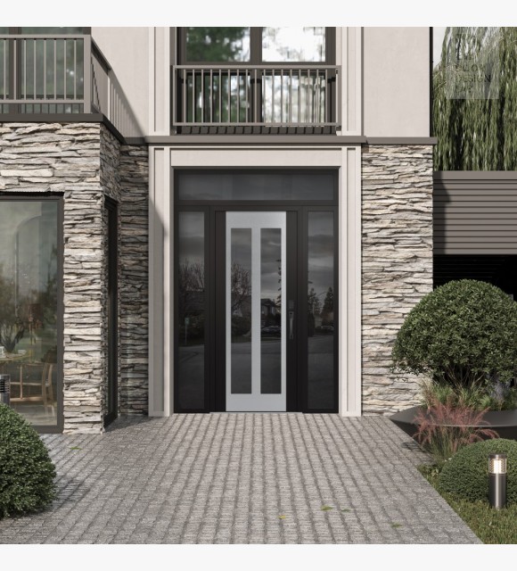 The double-chamber glazing combined with polystyrene insulation reduces heat loss by 40-50% compared to conventional exterior doors: