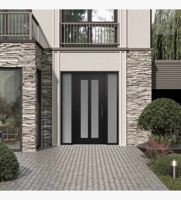 The double-chamber glazing combined with polystyrene insulation reduces heat loss by 40-50% compared to conventional exterior doors: