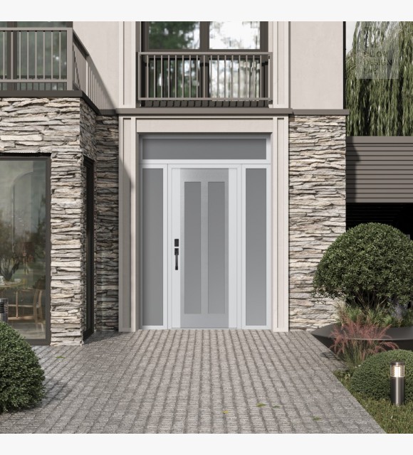 The double-chamber glazing combined with polystyrene insulation reduces heat loss by 40-50% compared to conventional exterior doors: