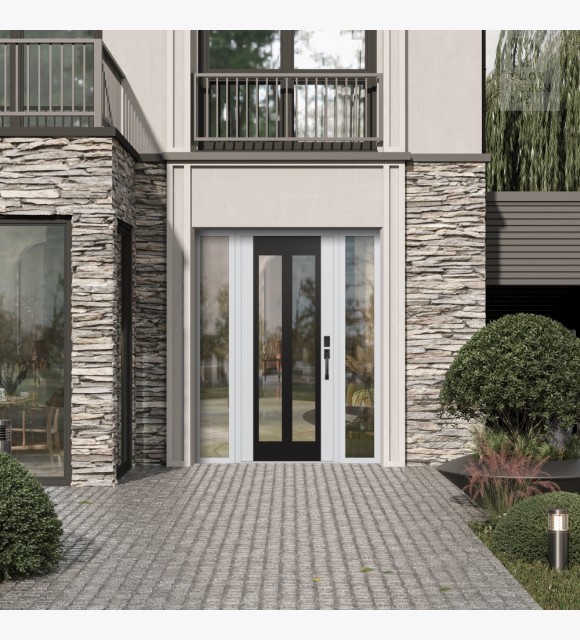 The double-chamber glazing combined with polystyrene insulation reduces heat loss by 40-50% compared to conventional exterior doors: