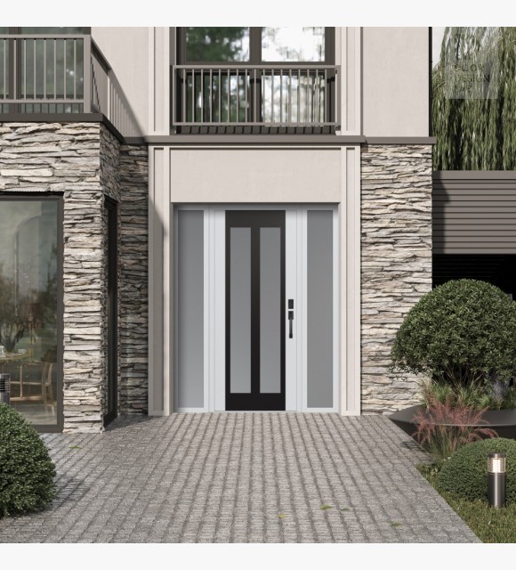The double-chamber glazing combined with polystyrene insulation reduces heat loss by 40-50% compared to conventional exterior doors: