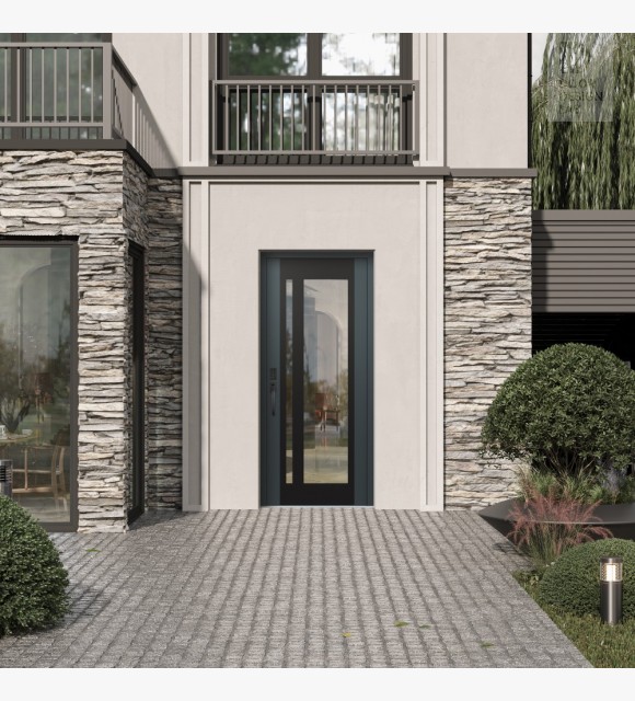 Modern Steel Front Door Diamond C15 36" x 80" anthracite/anthracite clear Glass Panel black RHI