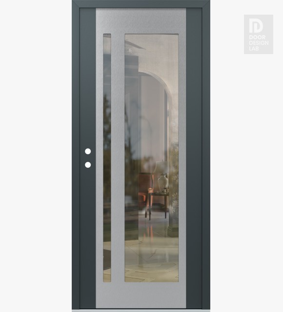 Modern Steel Front Door Diamond C15 36" x 80" anthracite/anthracite clear Glass Panel stainless steel RHI