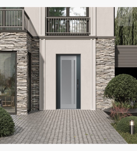 Modern Steel Front Door Diamond C15 36" x 80" anthracite/anthracite frosted Glass Panel stainless steel LHI