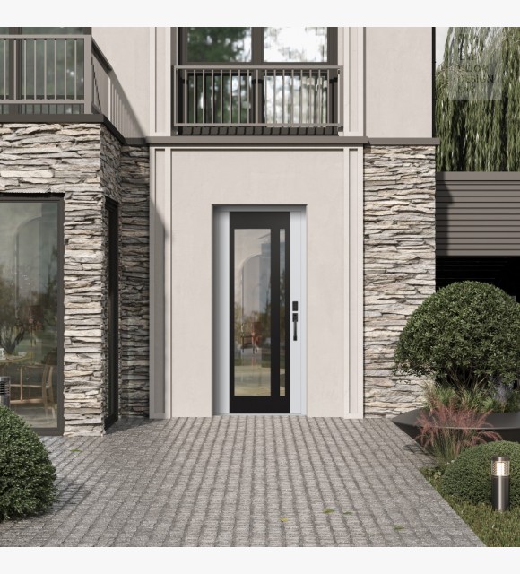The double-chamber glazing combined with polystyrene insulation reduces heat loss by 40-50% compared to conventional exterior doors: