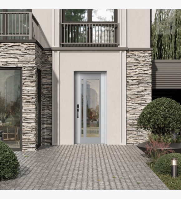 The double-chamber glazing combined with polystyrene insulation reduces heat loss by 40-50% compared to conventional exterior doors: