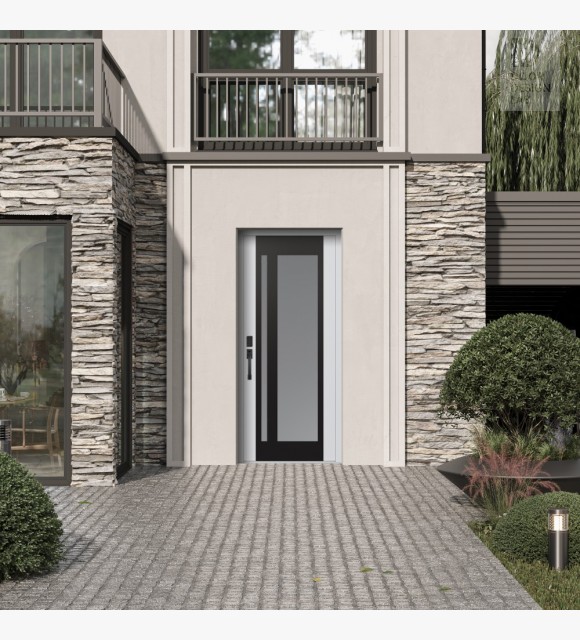 The double-chamber glazing combined with polystyrene insulation reduces heat loss by 40-50% compared to conventional exterior doors:
