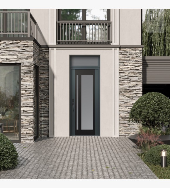 Modern Steel Front Door Diamond C15 36" x 96" anthracite/anthracite frosted Glass Panel black RHI with Transom frosted Glass