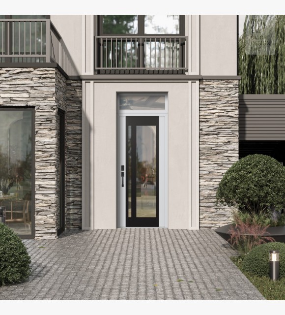The double-chamber glazing combined with polystyrene insulation reduces heat loss by 40-50% compared to conventional exterior doors: