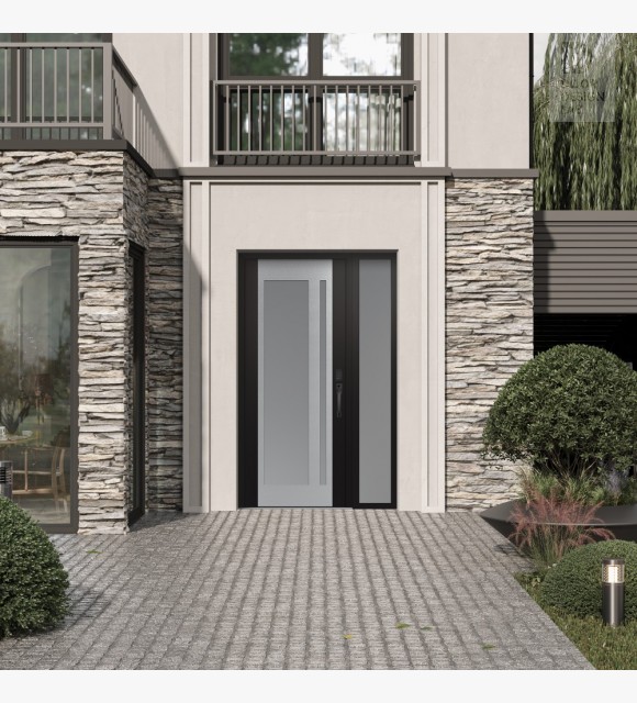 The double-chamber glazing combined with polystyrene insulation reduces heat loss by 40-50% compared to conventional exterior doors: