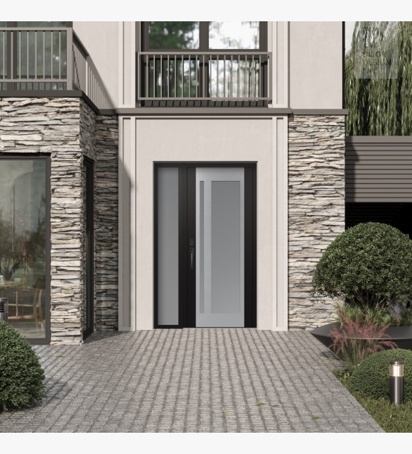 The double-chamber glazing combined with polystyrene insulation reduces heat loss by 40-50% compared to conventional exterior doors: