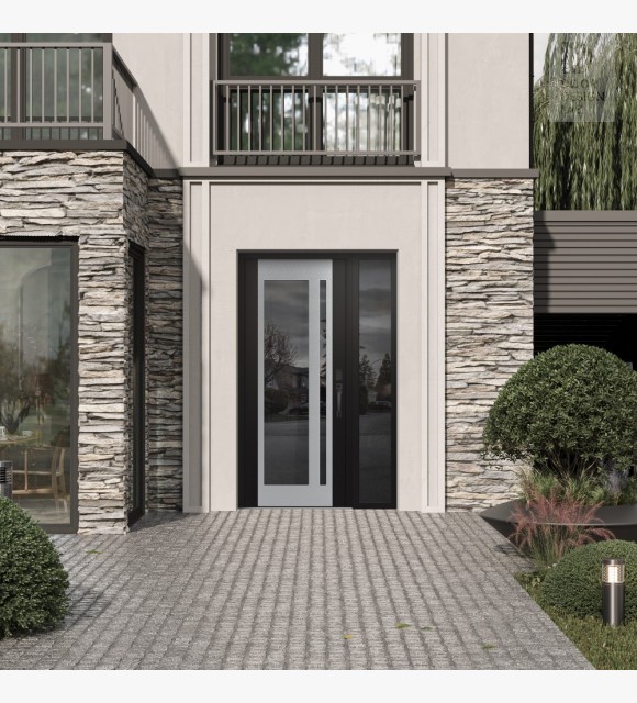 The double-chamber glazing combined with polystyrene insulation reduces heat loss by 40-50% compared to conventional exterior doors: