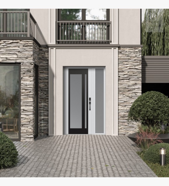 The double-chamber glazing combined with polystyrene insulation reduces heat loss by 40-50% compared to conventional exterior doors: