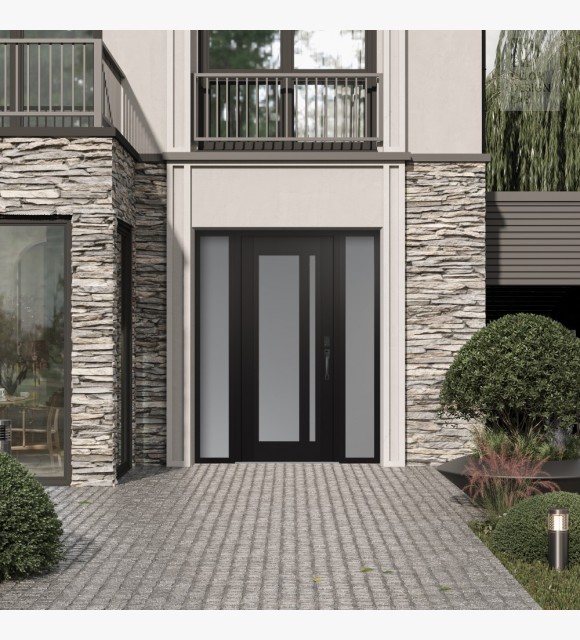 The double-chamber glazing combined with polystyrene insulation reduces heat loss by 40-50% compared to conventional exterior doors: