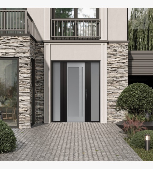 The double-chamber glazing combined with polystyrene insulation reduces heat loss by 40-50% compared to conventional exterior doors: