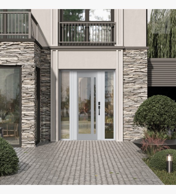 The double-chamber glazing combined with polystyrene insulation reduces heat loss by 40-50% compared to conventional exterior doors: