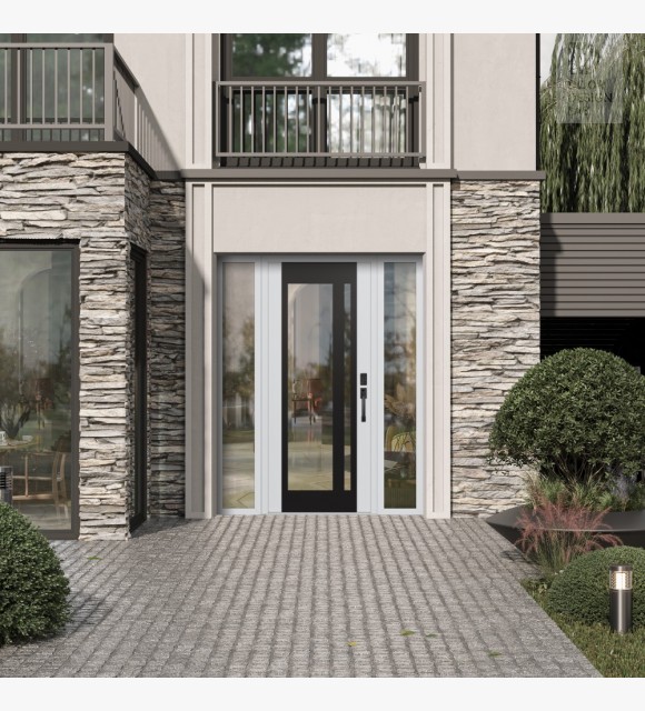 The double-chamber glazing combined with polystyrene insulation reduces heat loss by 40-50% compared to conventional exterior doors: