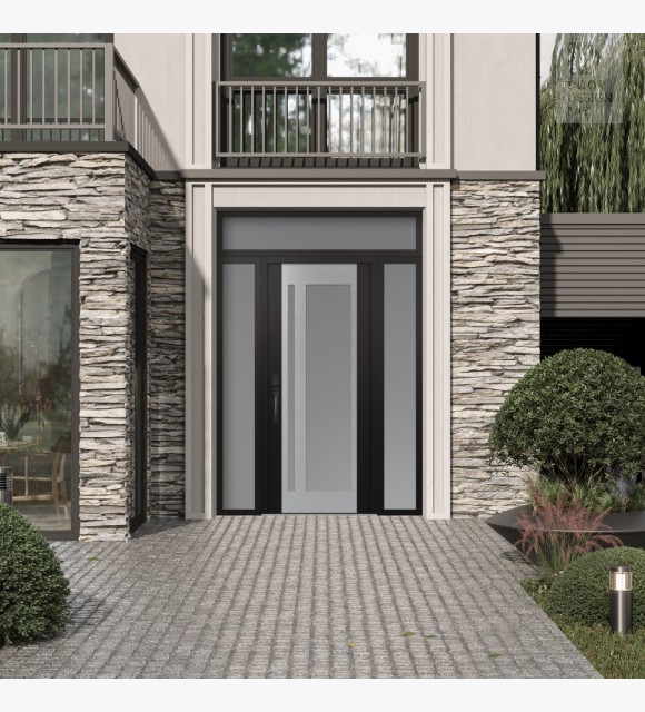 The double-chamber glazing combined with polystyrene insulation reduces heat loss by 40-50% compared to conventional exterior doors: