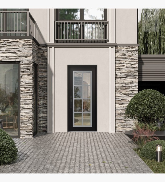 The double-chamber glazing combined with polystyrene insulation reduces heat loss by 40-50% compared to conventional exterior doors: