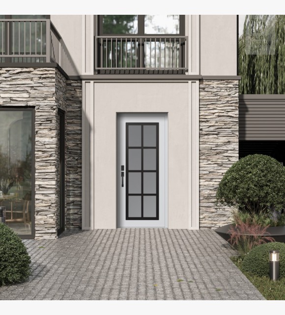 The double-chamber glazing combined with polystyrene insulation reduces heat loss by 40-50% compared to conventional exterior doors: