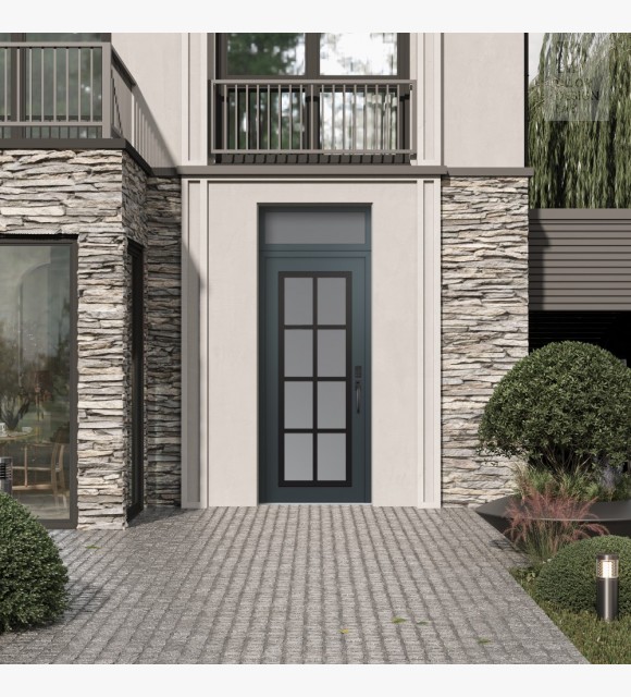The double-chamber glazing combined with polystyrene insulation reduces heat loss by 40-50% compared to conventional exterior doors: