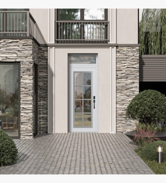 The double-chamber glazing combined with polystyrene insulation reduces heat loss by 40-50% compared to conventional exterior doors:
