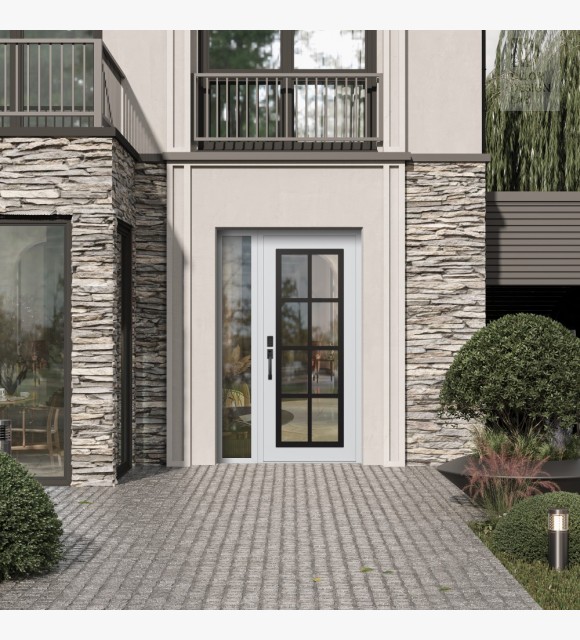 The double-chamber glazing combined with polystyrene insulation reduces heat loss by 40-50% compared to conventional exterior doors: