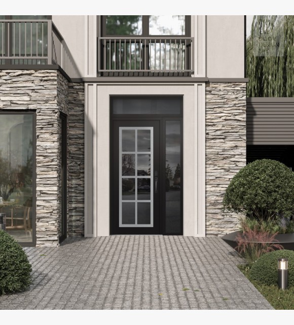 The double-chamber glazing combined with polystyrene insulation reduces heat loss by 40-50% compared to conventional exterior doors: