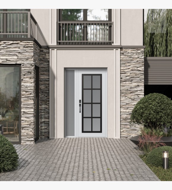 The double-chamber glazing combined with polystyrene insulation reduces heat loss by 40-50% compared to conventional exterior doors: