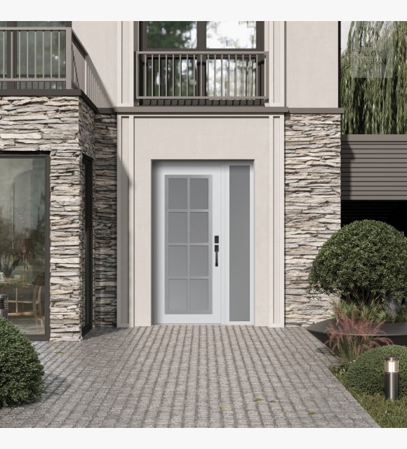 The double-chamber glazing combined with polystyrene insulation reduces heat loss by 40-50% compared to conventional exterior doors: