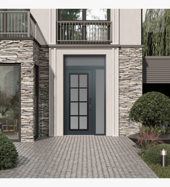 The double-chamber glazing combined with polystyrene insulation reduces heat loss by 40-50% compared to conventional exterior doors: