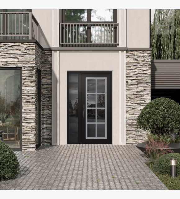 The double-chamber glazing combined with polystyrene insulation reduces heat loss by 40-50% compared to conventional exterior doors:
