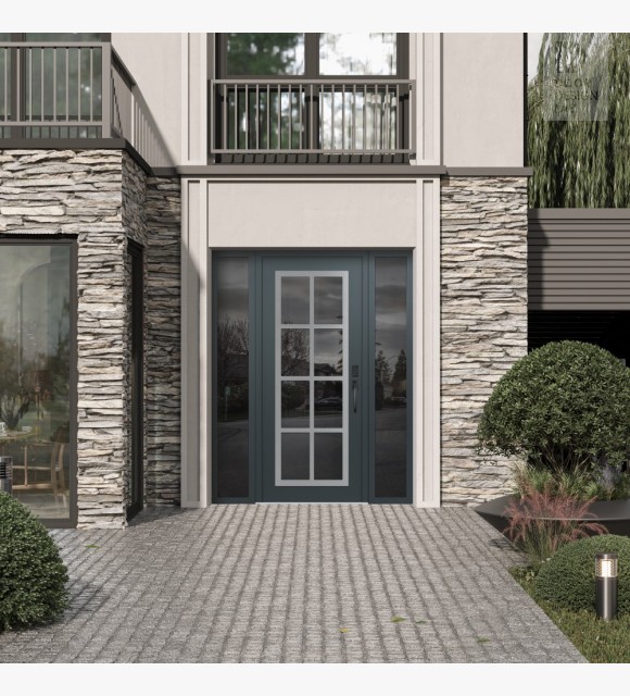 The double-chamber glazing combined with polystyrene insulation reduces heat loss by 40-50% compared to conventional exterior doors: