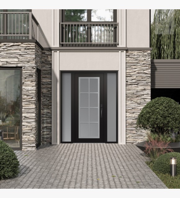 The double-chamber glazing combined with polystyrene insulation reduces heat loss by 40-50% compared to conventional exterior doors: