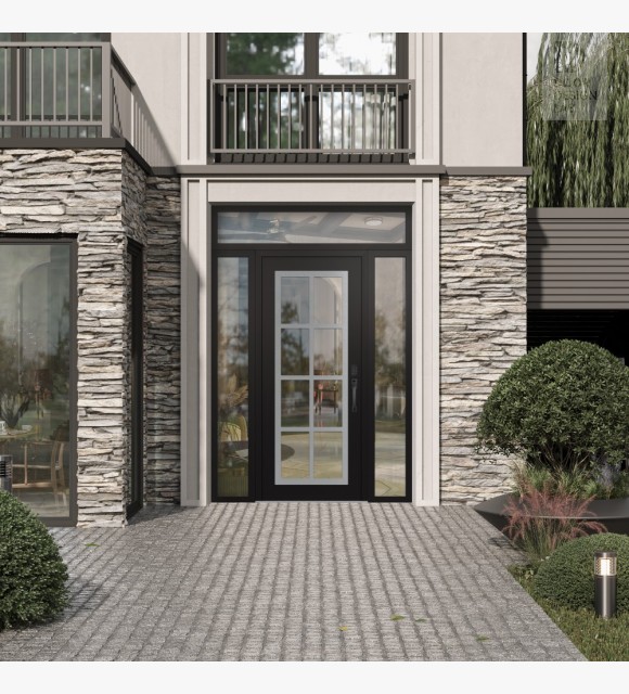 The double-chamber glazing combined with polystyrene insulation reduces heat loss by 40-50% compared to conventional exterior doors: