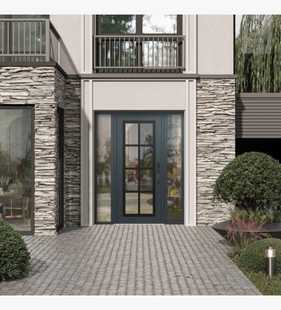 The thermal break is exceptional technology based on the fundamental laws of physics. To eliminate heat loss, it separates two metal elements in contact with each other, thereby delimiting the outer cold part of the door from the inner one. Thus, the door is always reliably protected from freezing, and your home retains more heat during the cold season and, vice versa, more coolness during the hot seasons. Since the inner surface of the door and the handle have a temperature close to room temperature, they are pleasant to touch at any time of the year.