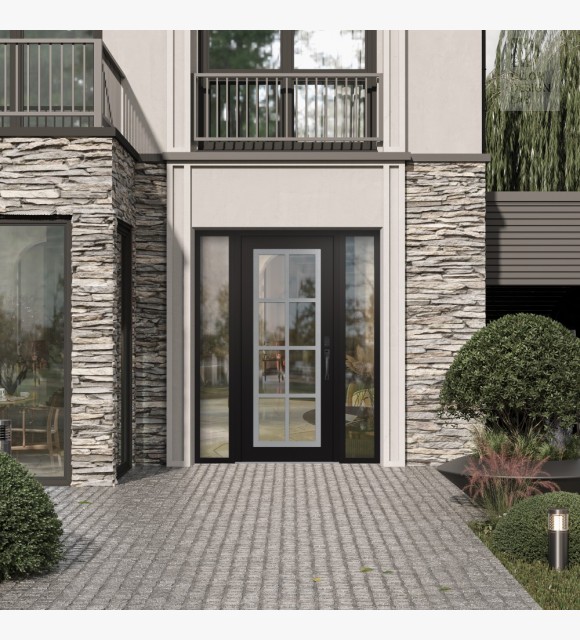 The double-chamber glazing combined with polystyrene insulation reduces heat loss by 40-50% compared to conventional exterior doors: