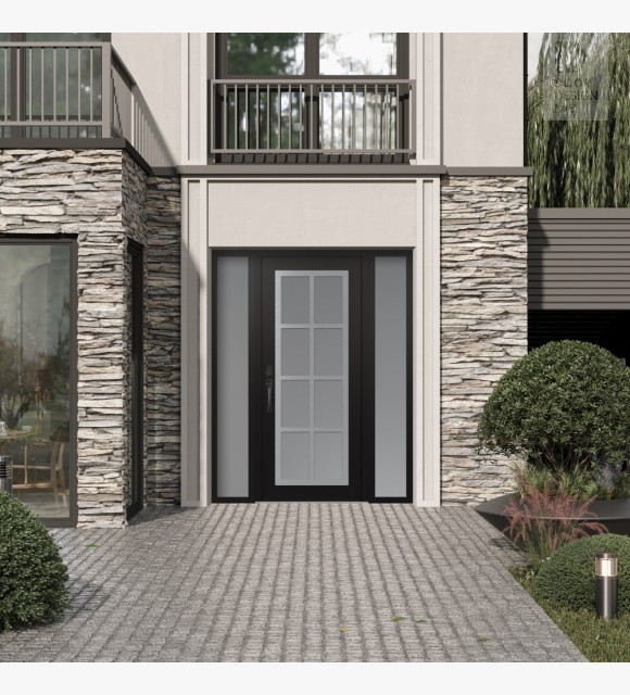The double-chamber glazing combined with polystyrene insulation reduces heat loss by 40-50% compared to conventional exterior doors:
