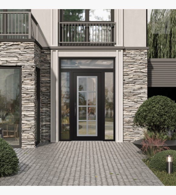 The double-chamber glazing combined with polystyrene insulation reduces heat loss by 40-50% compared to conventional exterior doors: